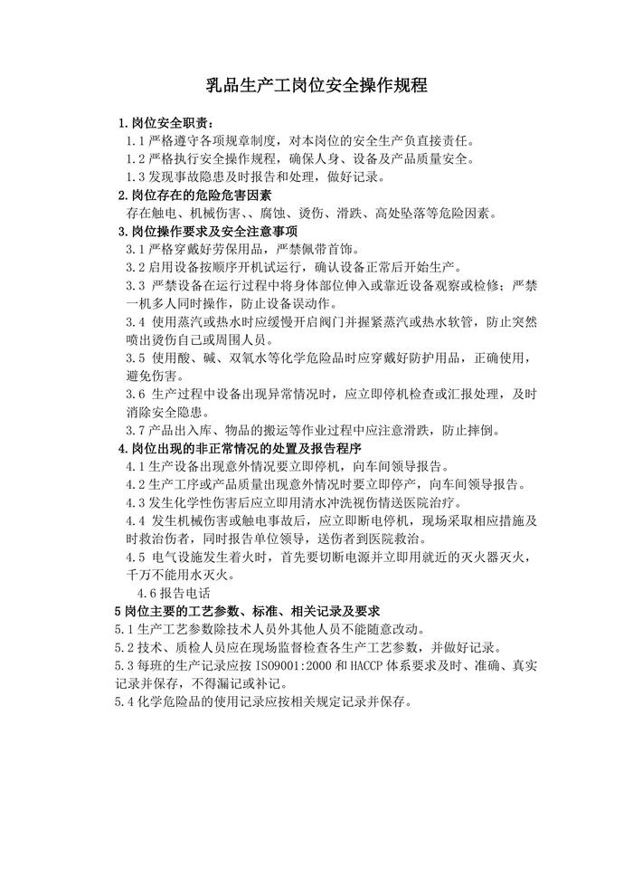 乳品生產(chǎn)工崗位安全操作規(guī)程doc
