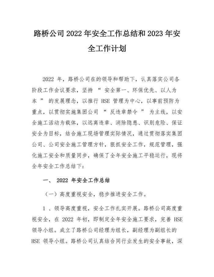 2022公司安全工作總結(jié)和計劃(14頁)docx