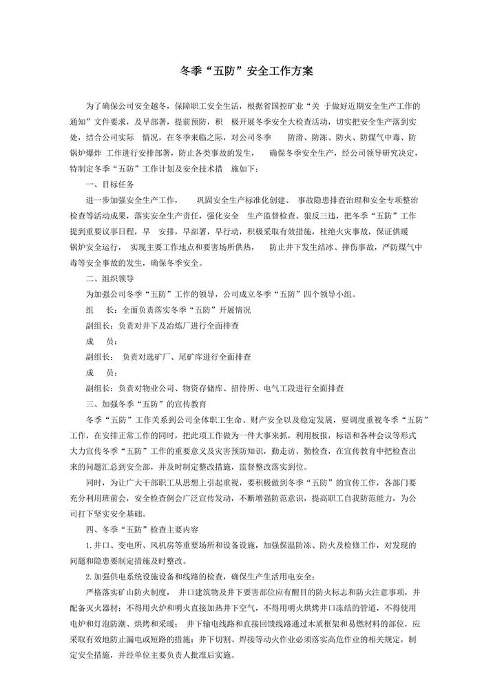 XX礦業(yè)公司冬季五防工作方案docx