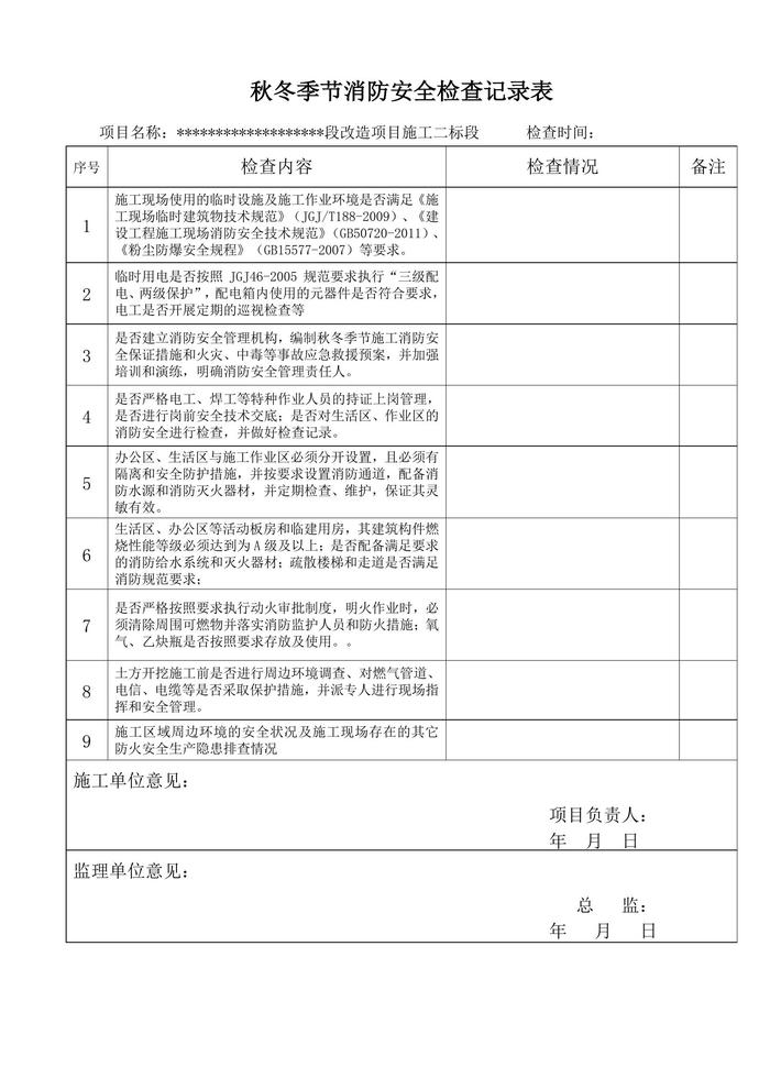 秋冬季節(jié)消防安全檢查表doc