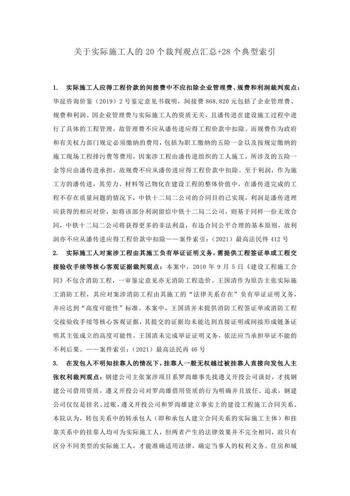 關(guān)于實(shí)際施工人的20個(gè)裁判觀點(diǎn)匯總+28個(gè)典型索引docx