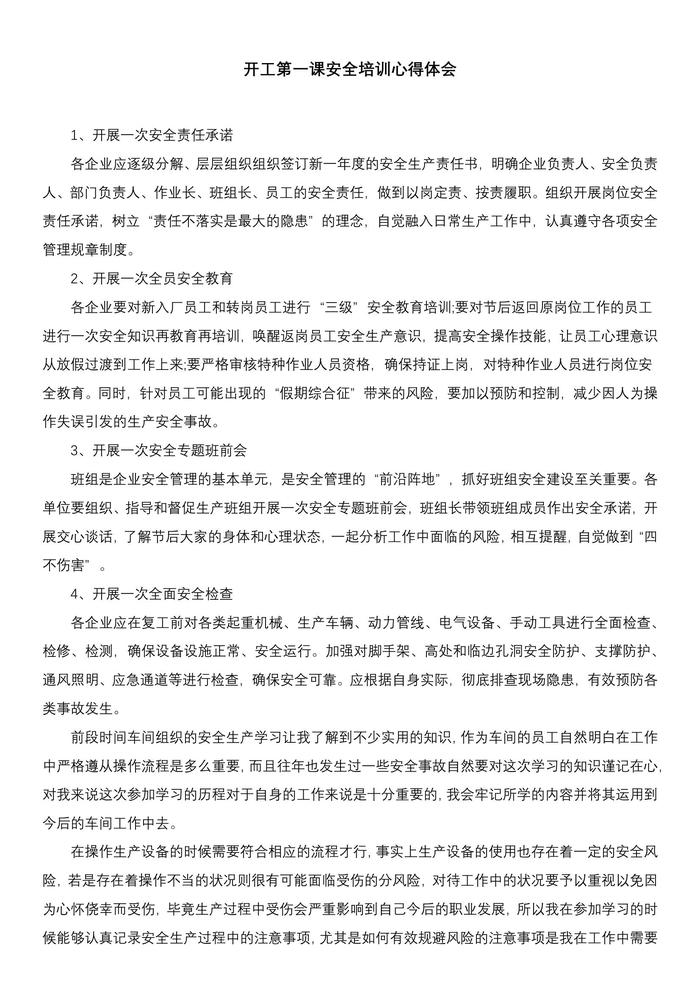 開工第一課安全培訓心得體會docx
