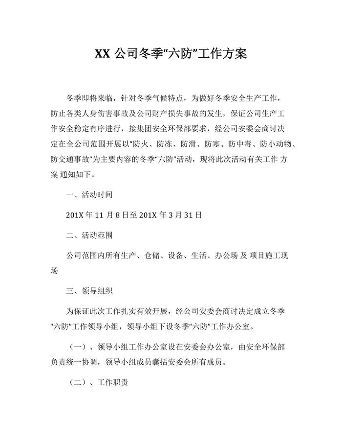 XX公司冬季“六防”工作方案(10頁)docx