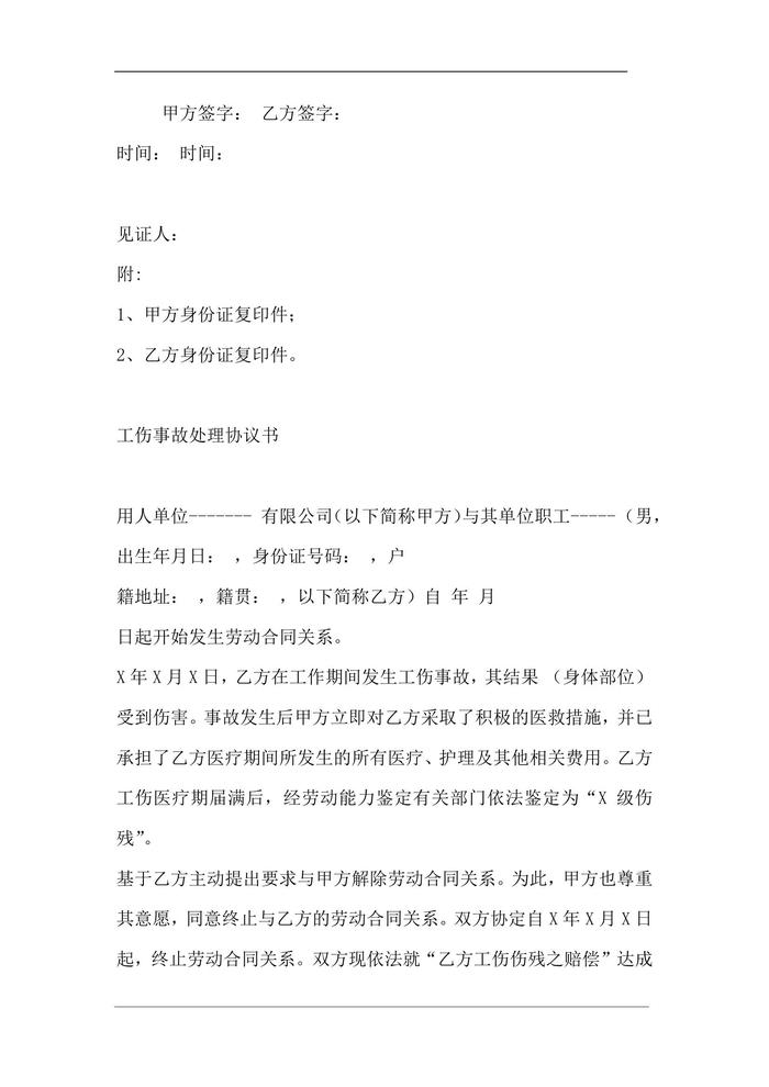 XX企業(yè)工傷事故處理協(xié)議書(shū)(4頁(yè) )docx