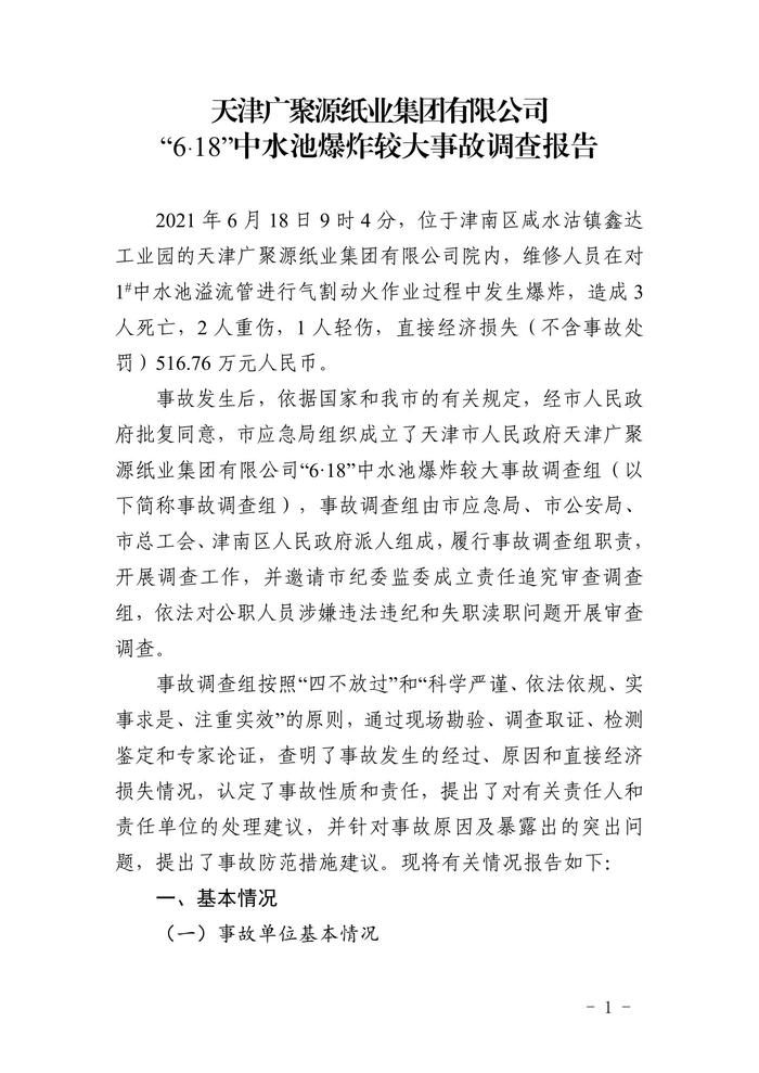 天津廣聚源紙業(yè)集團(tuán)有限公司 “6·18”中水池爆炸較大事故調(diào)查報(bào)告pdf