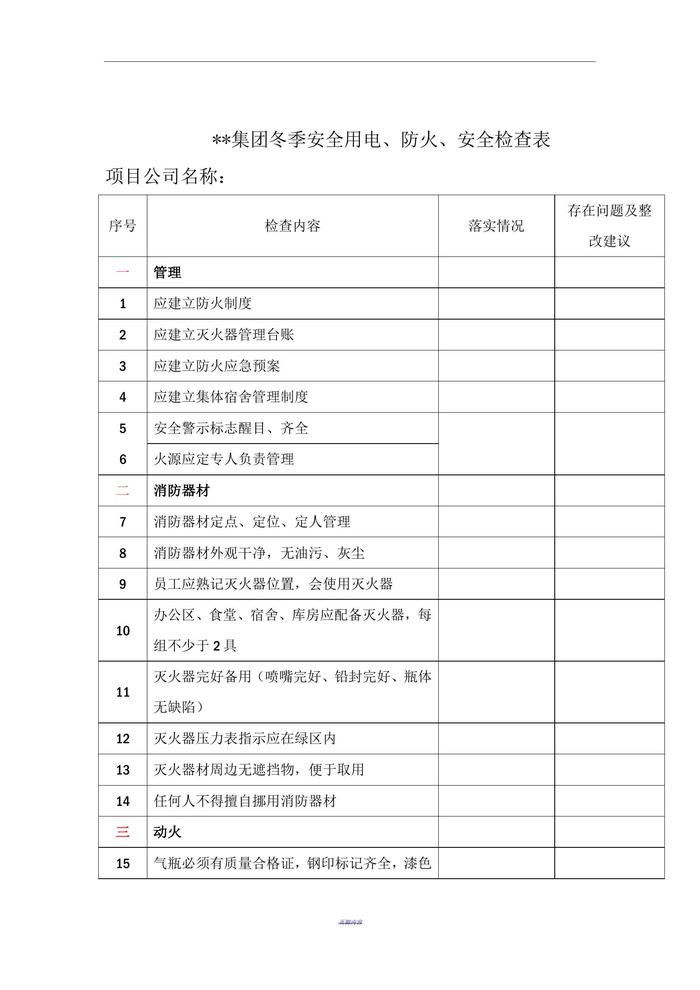 冬季消防安全專項(xiàng)檢查表doc
