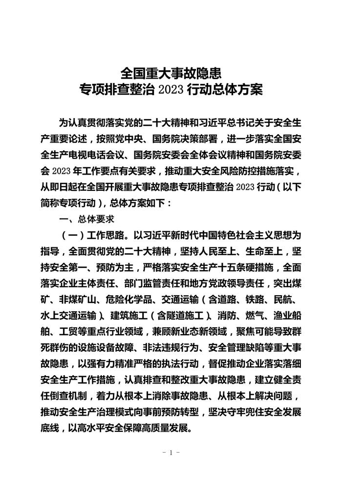 全國(guó)重大事故隱患專(zhuān)項(xiàng)排查整治2023行動(dòng)總體方案doc