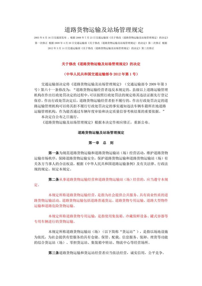 道路貨物運(yùn)輸及站場(chǎng)管理規(guī)定doc