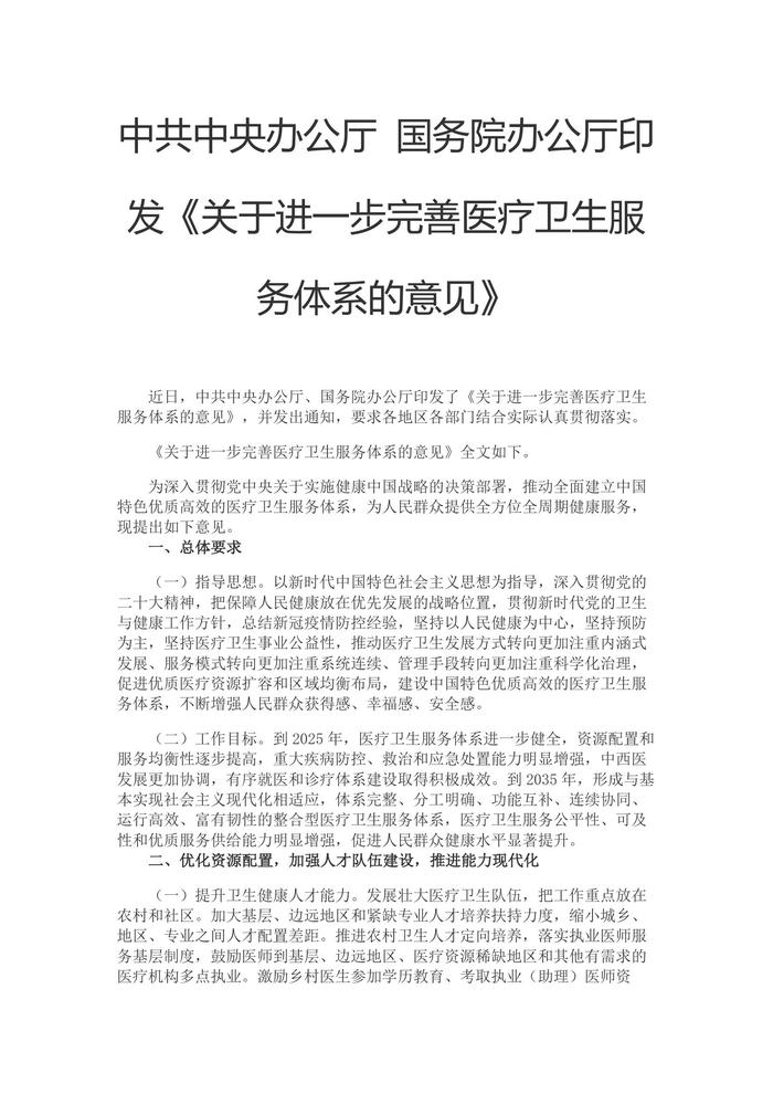 2023關于進一步完善醫(yī)療衛(wèi)生服務體系的意見docx