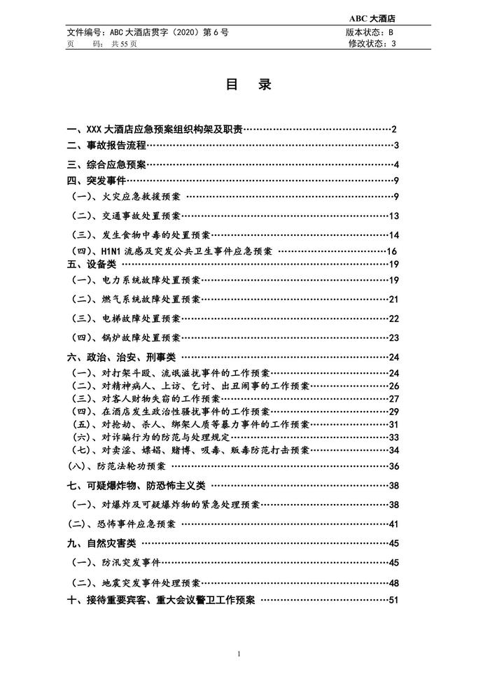 四星級大酒店應(yīng)急預(yù)案匯編doc