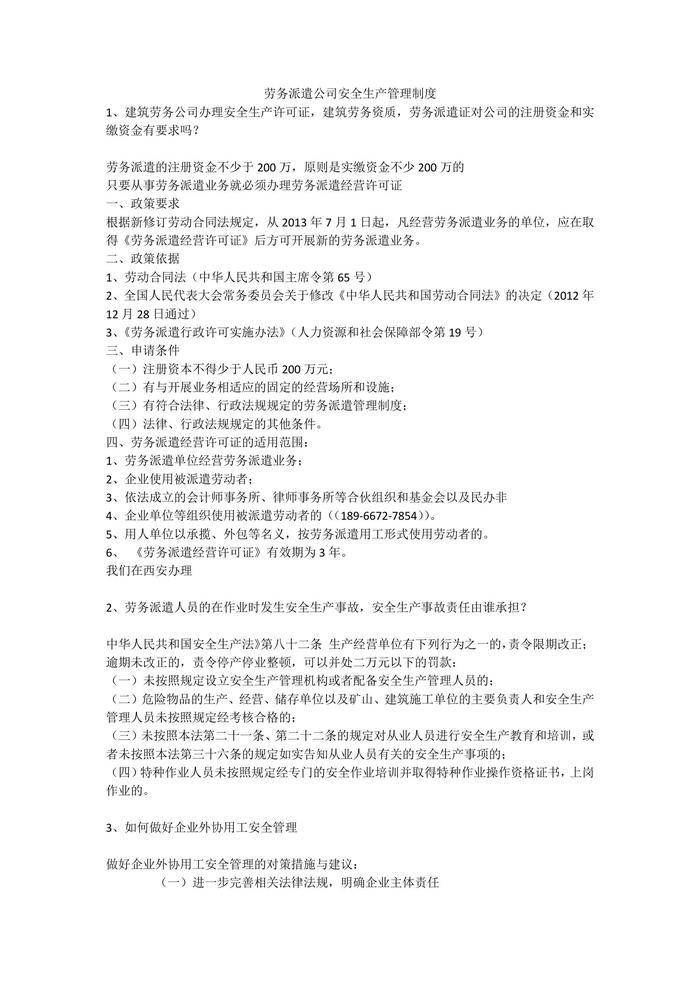 勞務(wù)派遣公司安全生產(chǎn)管理制度安全生產(chǎn)docx