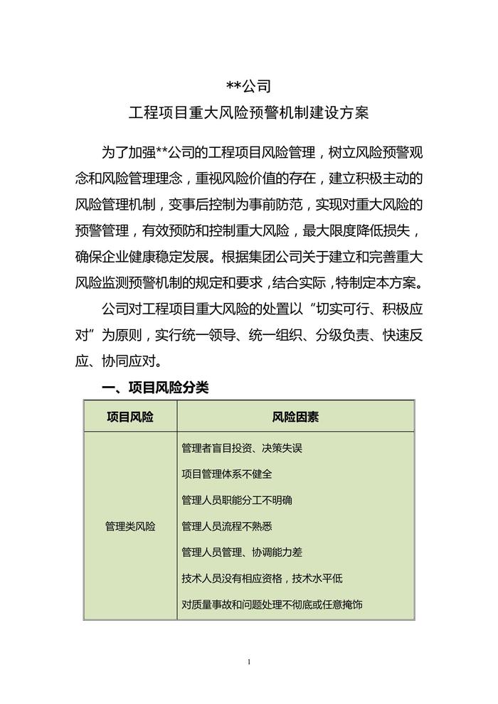 工程項(xiàng)目重大風(fēng)險(xiǎn)預(yù)警機(jī)制建設(shè)方案doc