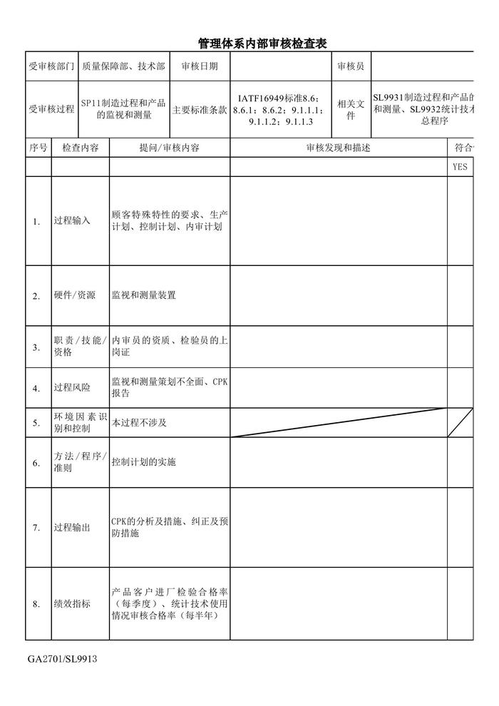 管理體系內(nèi)部審核檢查表-內(nèi)部審核檢查表xlsx