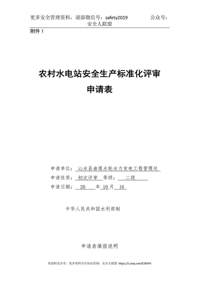 農(nóng)村水電安全生產(chǎn)標準化評審申請表doc
