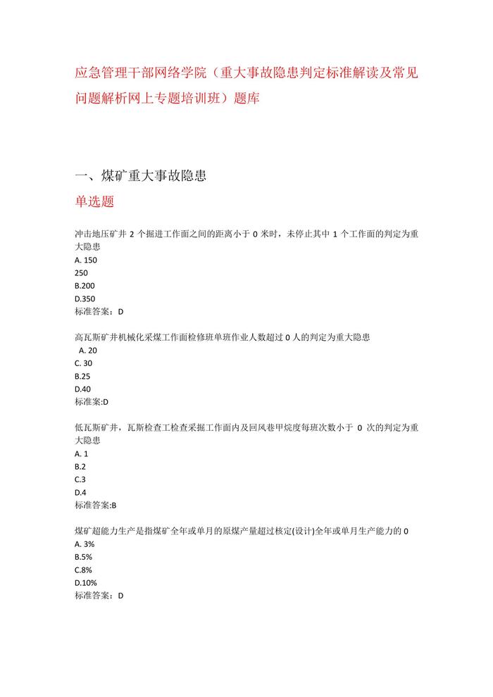 大事故隱患判定標(biāo)準(zhǔn)解讀及常見問題解析專題培訓(xùn)題庫docx