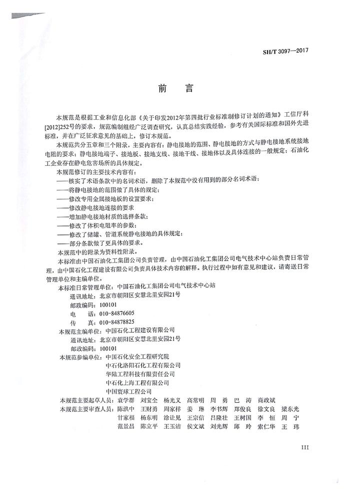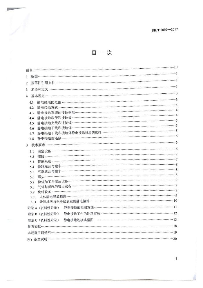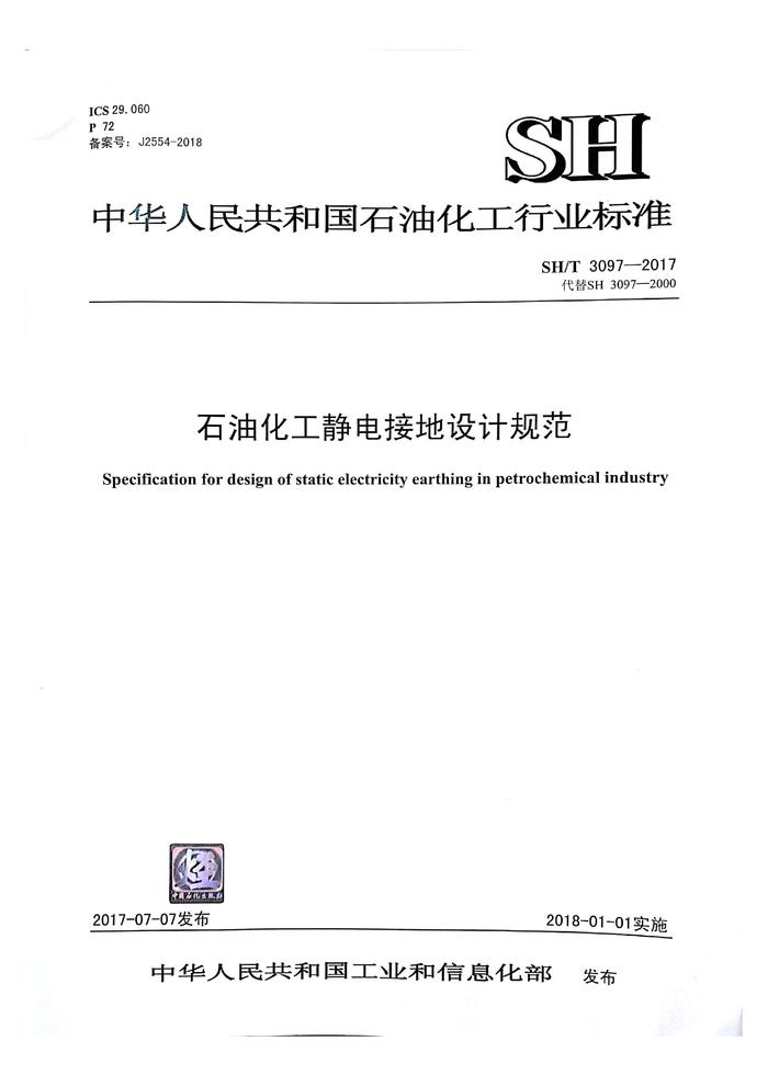 SHT 3097-2017 石油化工靜電接地設(shè)計規(guī)范pdf