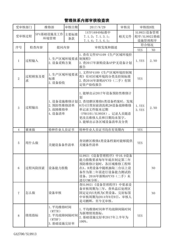 管理體系內部審核檢查表-和xls