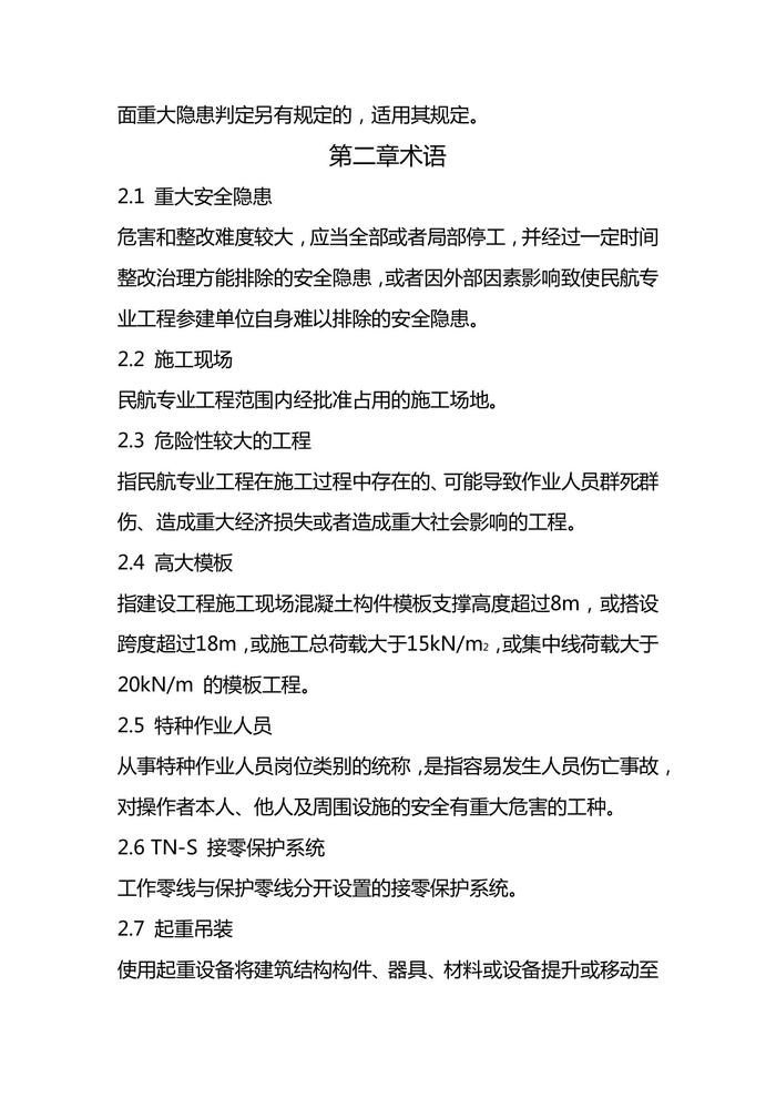 民航專業(yè)工程施工重大安全隱患判定標準(試行)docx