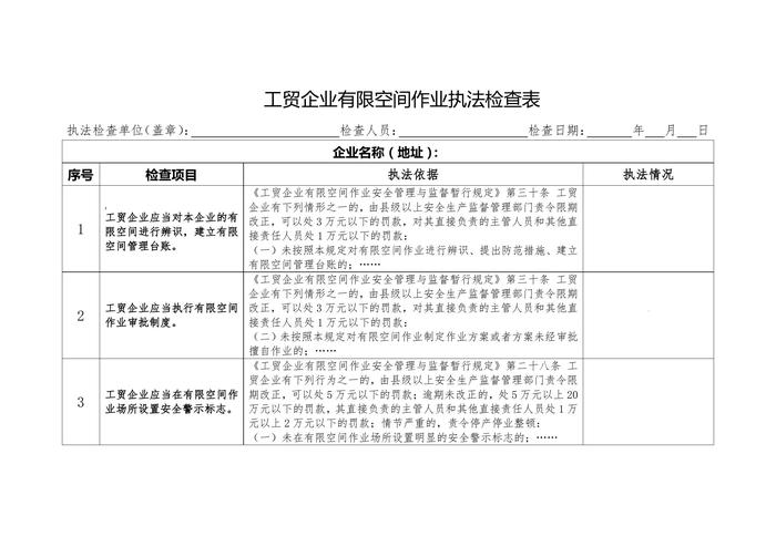 工貿(mào)企業(yè)有限空間作業(yè)執(zhí)法檢查表doc