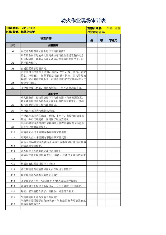 高風(fēng)險(xiǎn)作業(yè)現(xiàn)場(chǎng)起重作業(yè)審計(jì)表xlsx