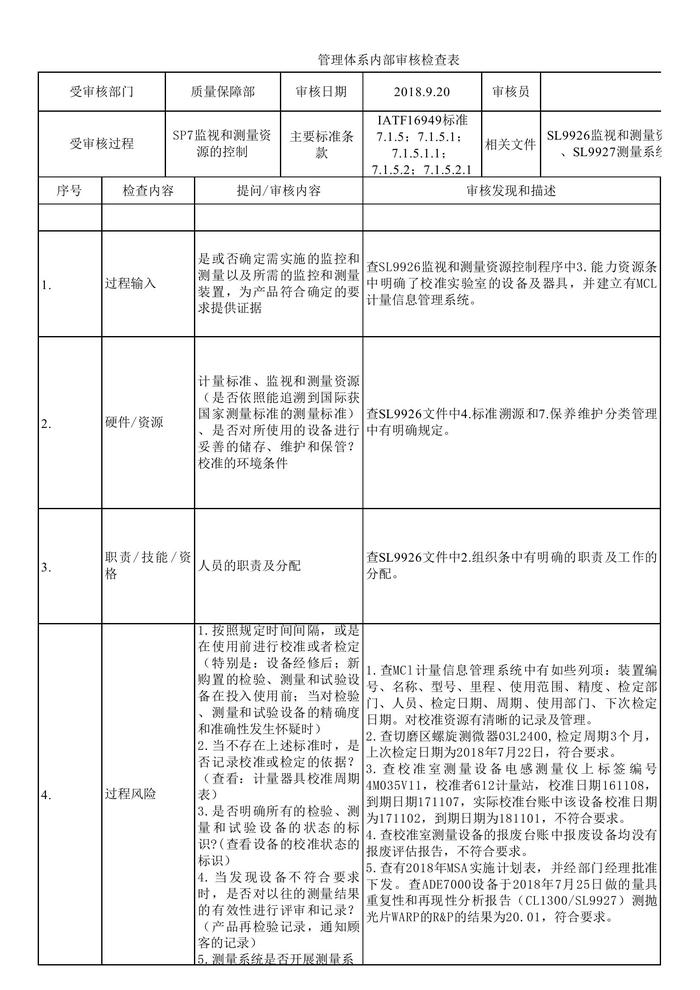 管理體系內(nèi)部審核檢查表-內(nèi)部審核檢查表xlsx