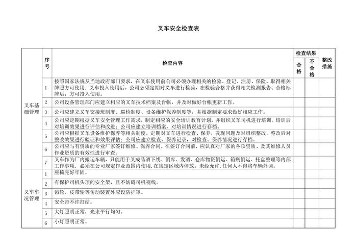 叉車(chē)安全檢查表(1)doc