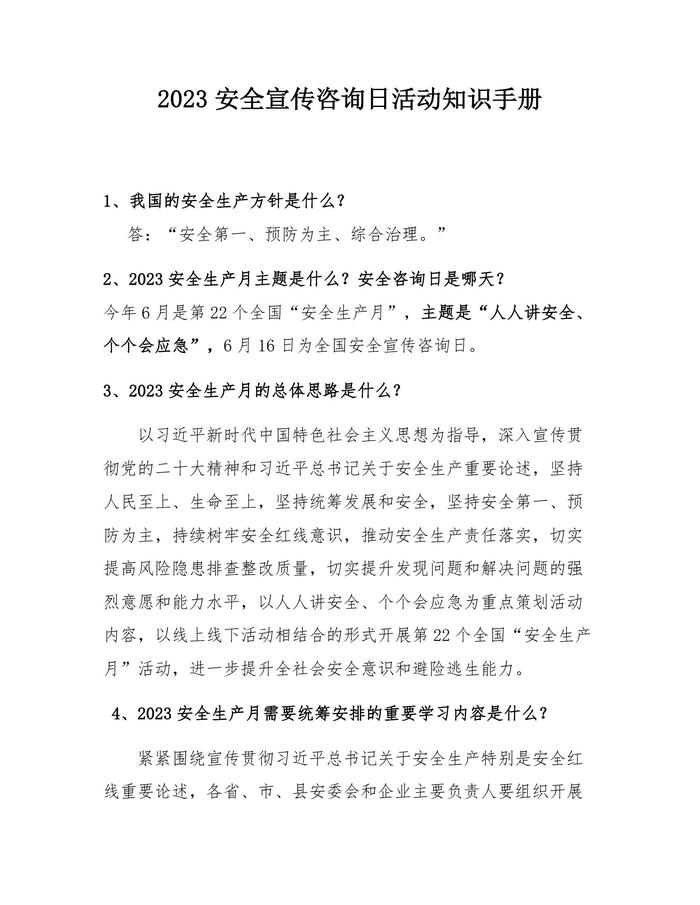 2023安全宣傳咨詢?nèi)栈顒?dòng)知識(shí)手冊(cè)(11頁)docx