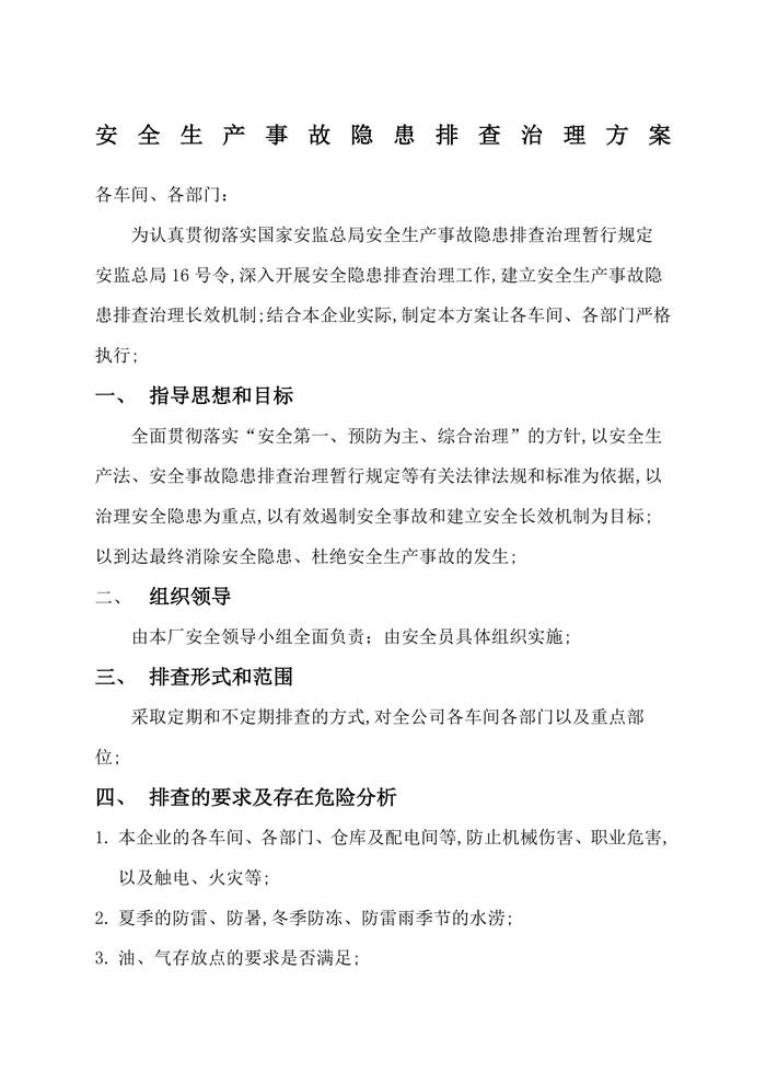 安全生產(chǎn)事故隱患排查治理方案docx