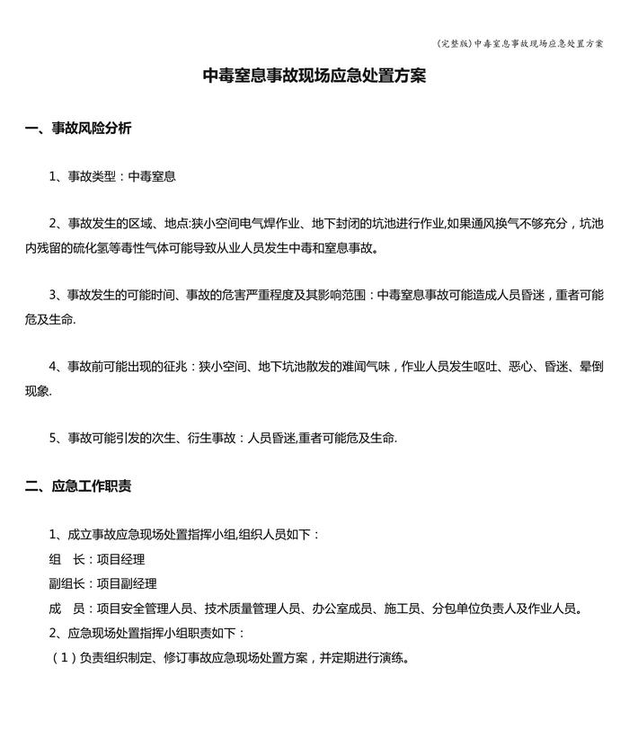 中毒窒息事故現(xiàn)場(chǎng)應(yīng)急處置方案doc