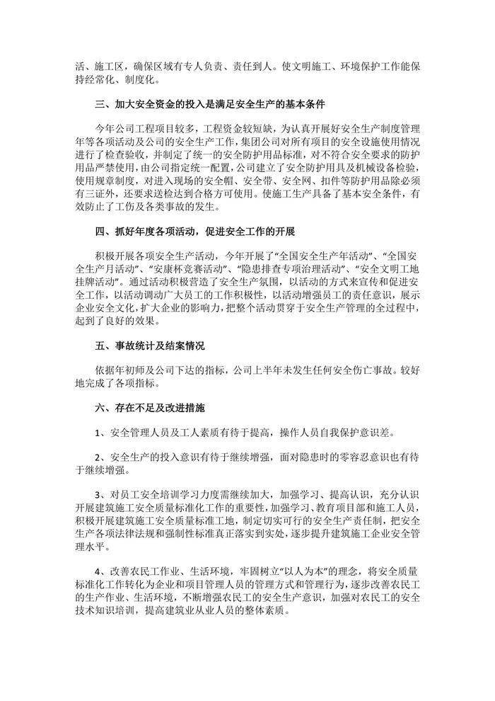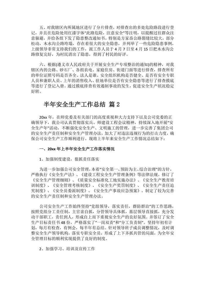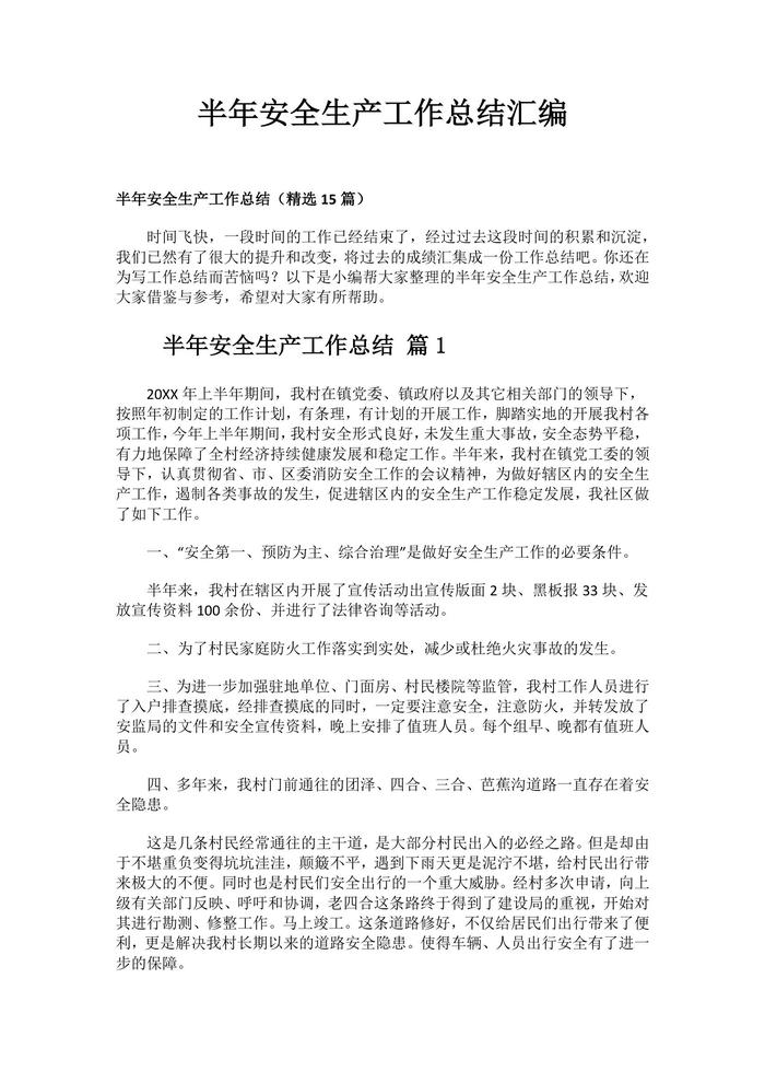 各類半年安全生產(chǎn)工作總結(jié)匯編(31頁)docx