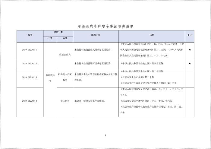 星級酒店生產(chǎn)安全事故隱患目錄--有依有據(jù)丨13頁doc