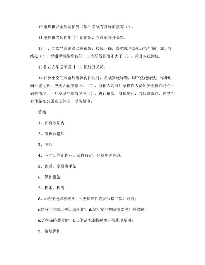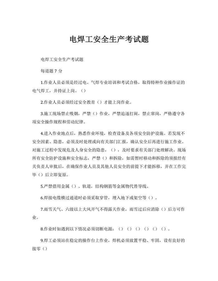 電焊工安全生產(chǎn)考試題docx