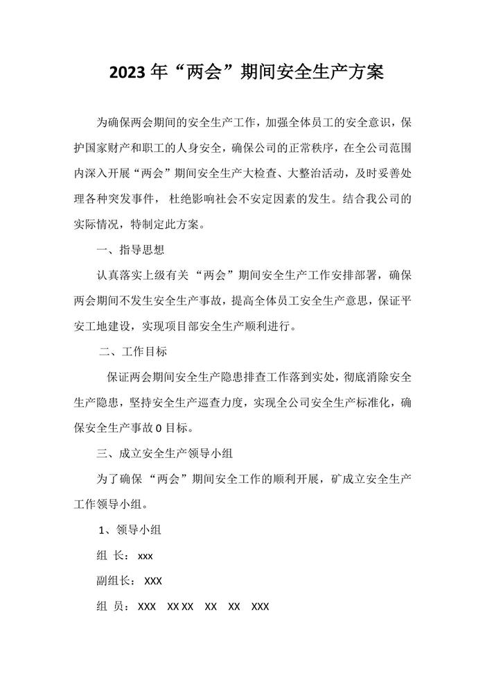 2023“兩會”期間安全生產(chǎn)工作方案匯編(9頁)docx