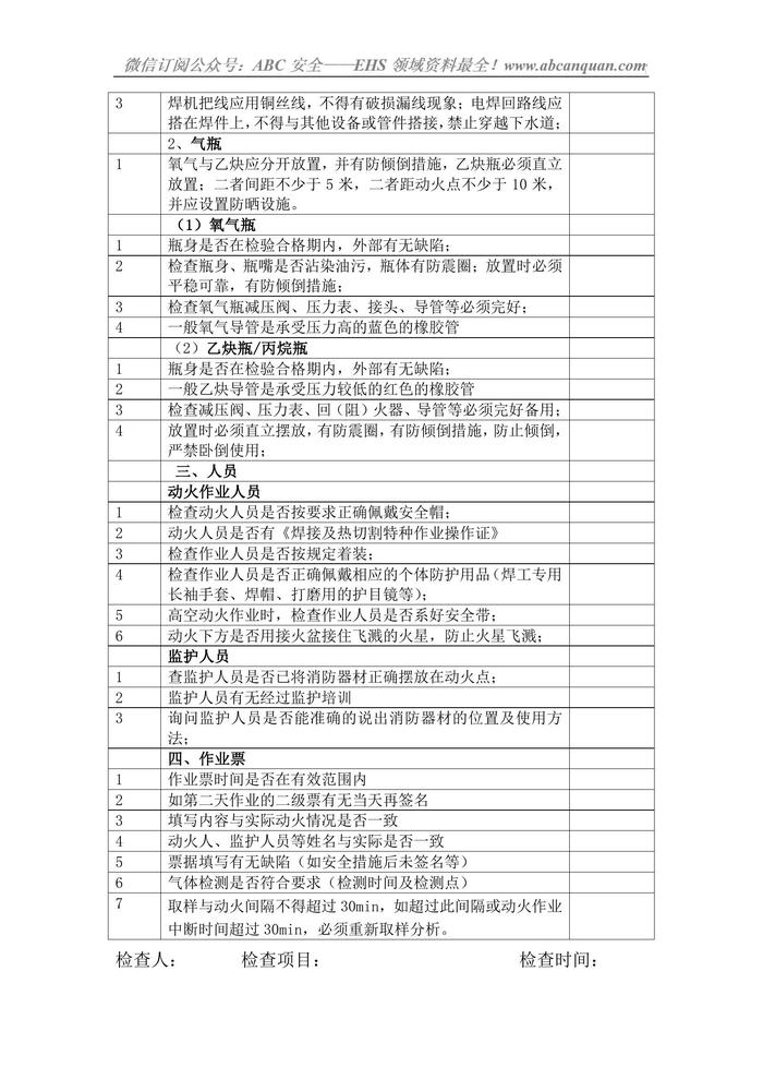 檢修動(dòng)火作業(yè)現(xiàn)場安全檢查對(duì)照表doc