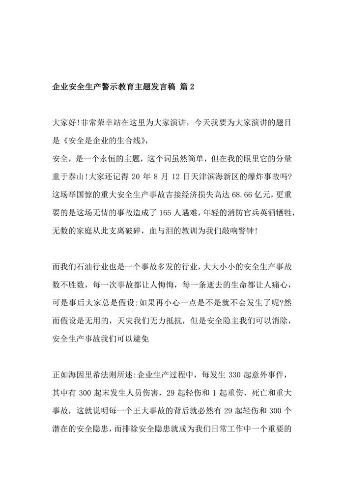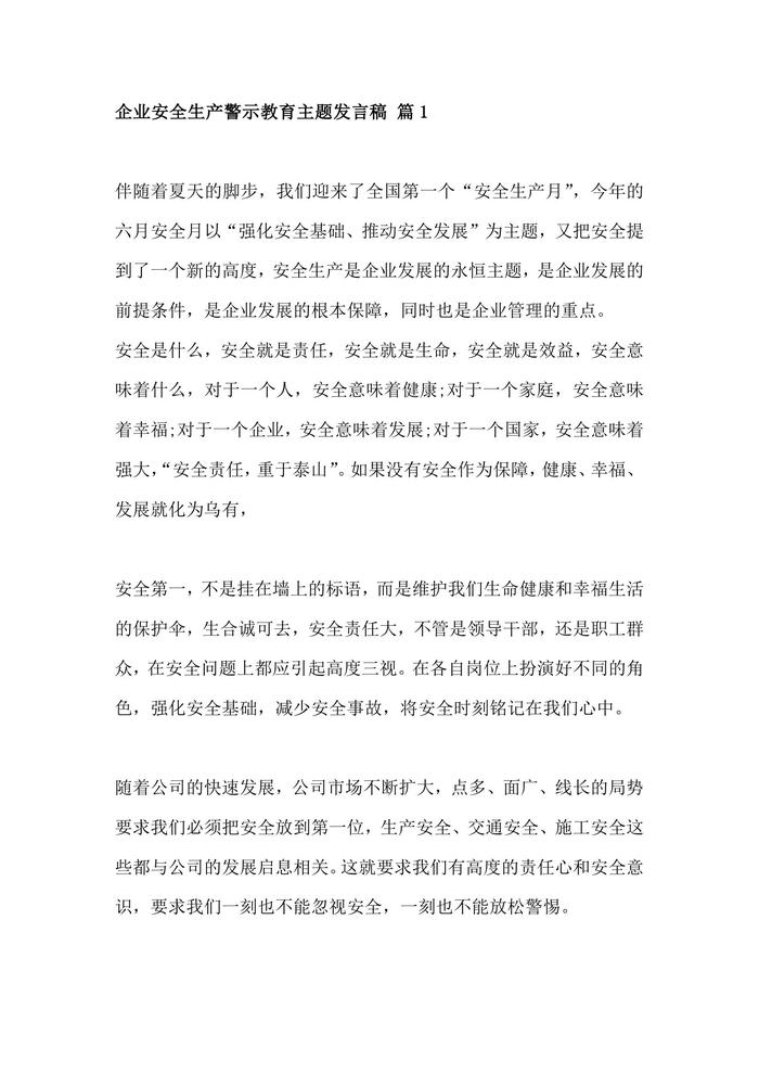 企業(yè)安全生產(chǎn)警示教育主題發(fā)言稿 2篇docx