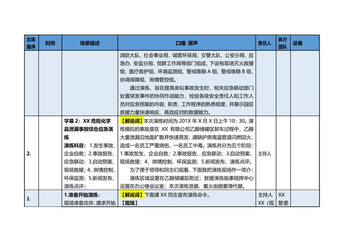 危險(xiǎn)化學(xué)品泄漏事故綜合應(yīng)急救援演練腳本docx