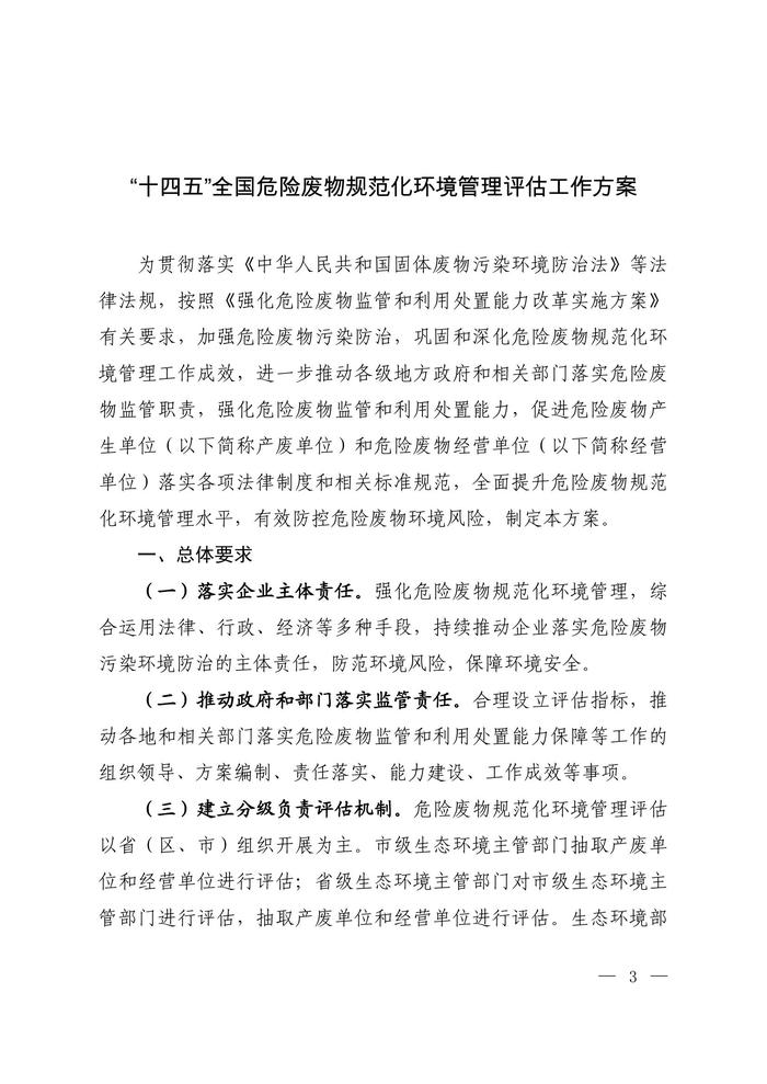 “十四五”全國危險廢物規(guī)范化環(huán)境管理評估工作方案pdf