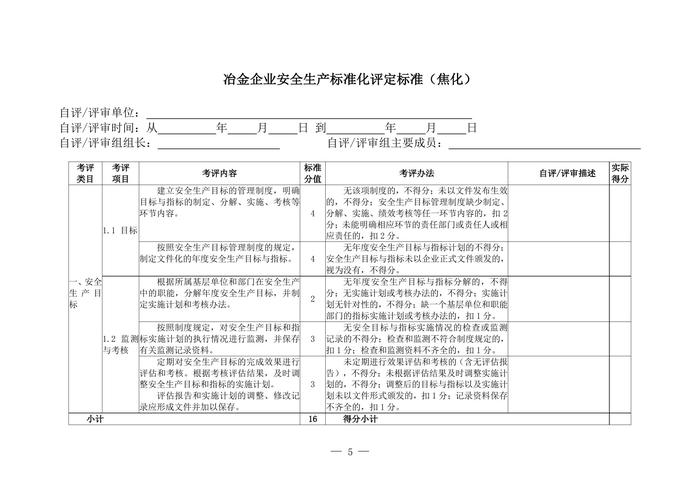 冶金企業(yè)安全標(biāo)準(zhǔn)化評定標(biāo)準(zhǔn)(焦化)doc