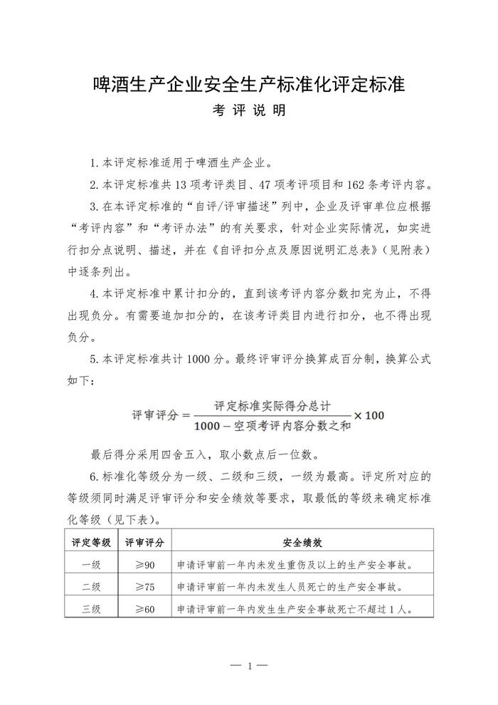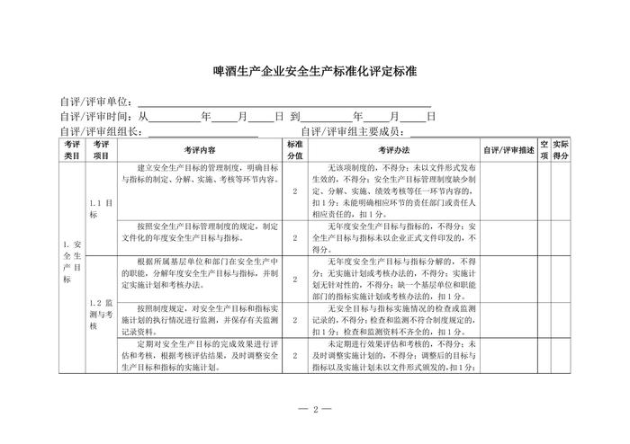 啤酒生產(chǎn)企業(yè)安全生產(chǎn)標(biāo)準(zhǔn)化評(píng)定標(biāo)準(zhǔn)doc