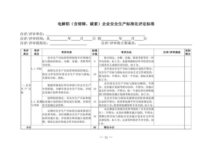 電解鋁(含熔鑄、碳素)企業(yè)安全生產(chǎn)標(biāo)準(zhǔn)化評(píng)定標(biāo)準(zhǔn)doc