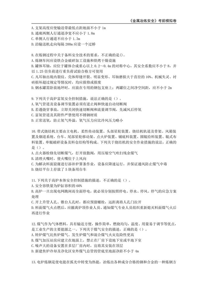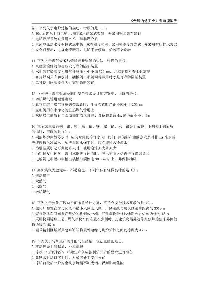 注冊安全工程師《金屬冶煉安全》白金密卷pdf