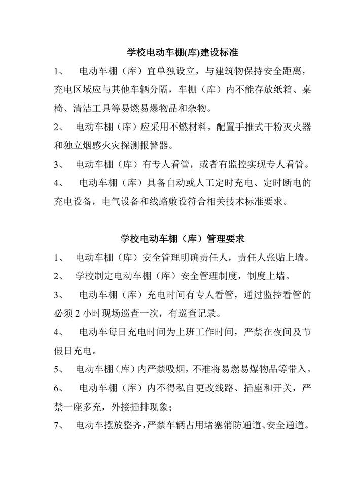 學(xué)校電動車車棚車庫建設(shè)標(biāo)準(zhǔn)及管理要求doc