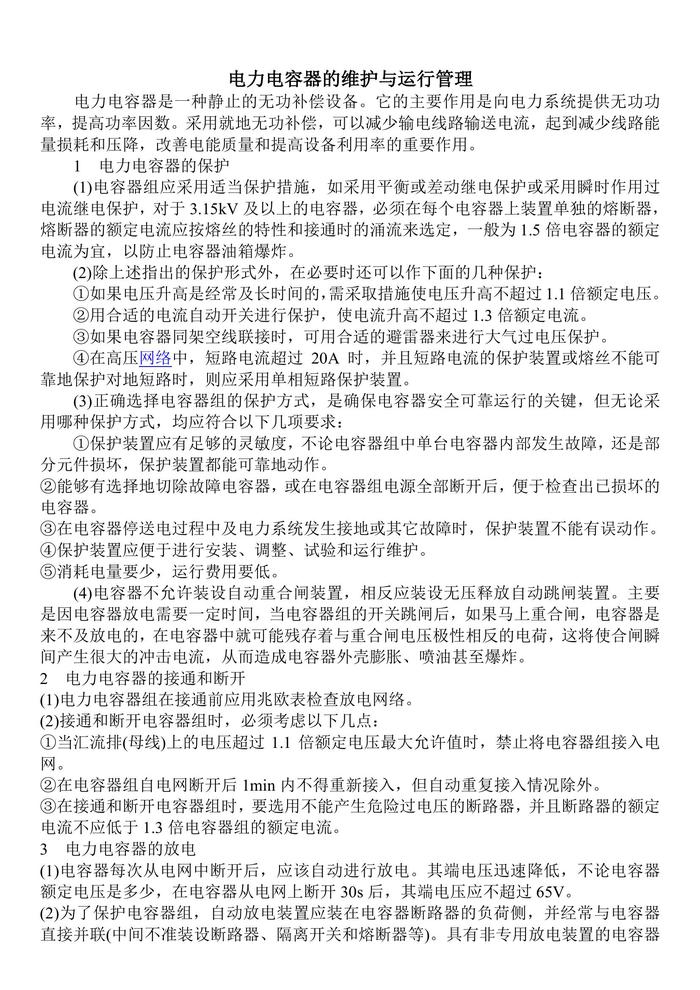 電力電容器的維護與運行管理(1)doc