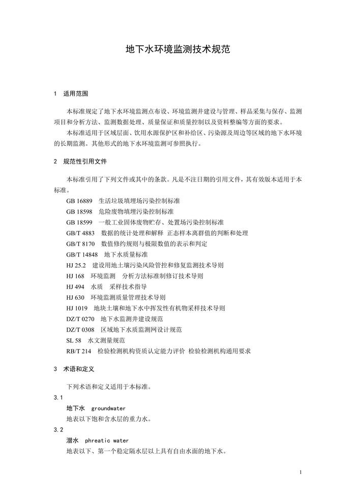 HJ164-2000地下水環(huán)境監(jiān)測(cè)技術(shù)規(guī)范規(guī)范(1)pdf