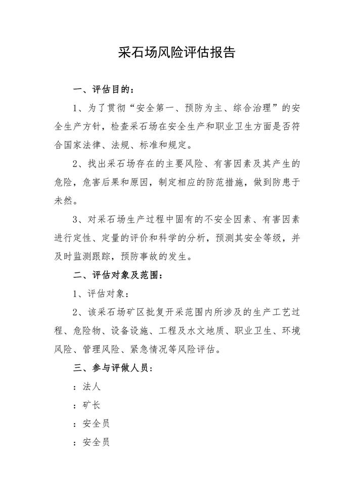 采石場風(fēng)險(xiǎn)評估報(bào)告doc