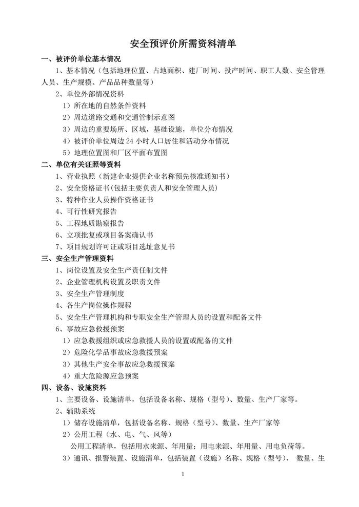 安全預(yù)評(píng)價(jià)所需資料清單doc