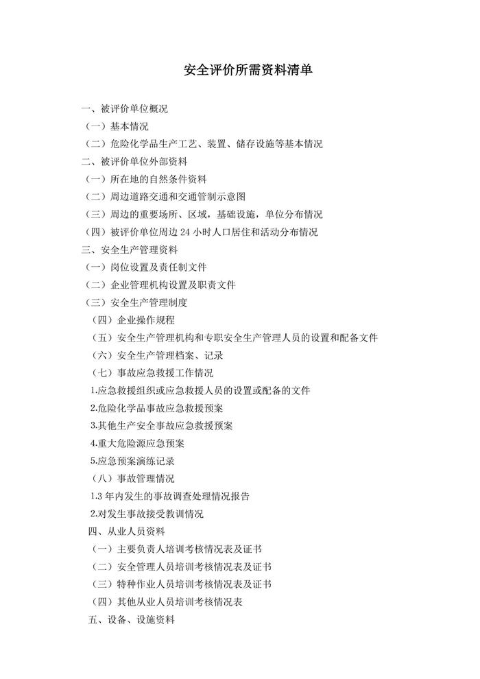 (完整版)安全現(xiàn)狀評價所需資料清單doc