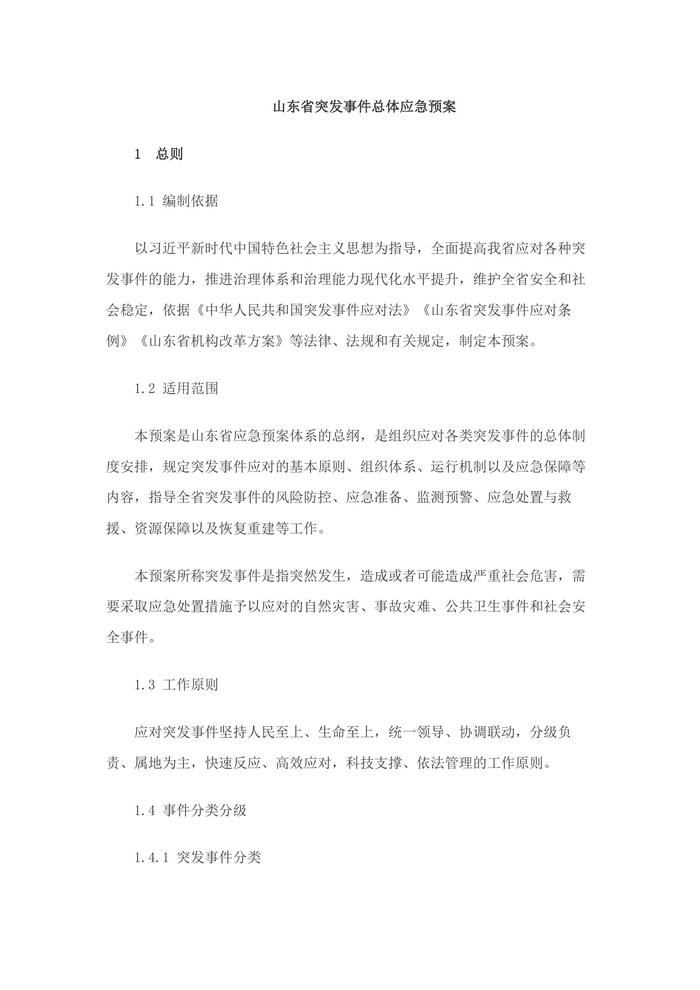 山東省突發(fā)事件總體應(yīng)急預(yù)案2021版docx