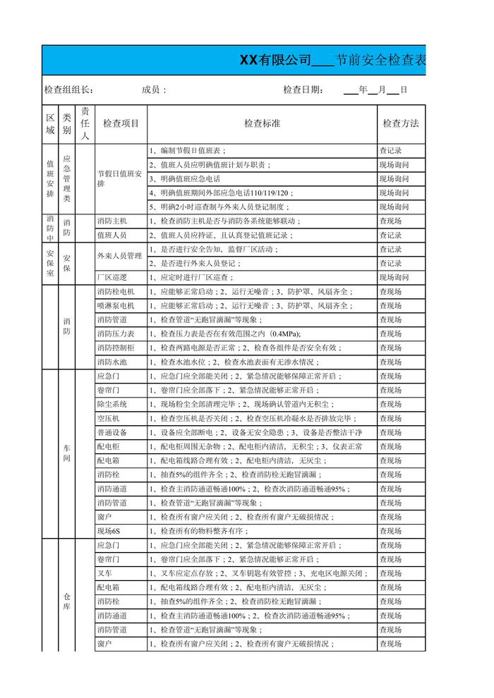 最新公司節(jié)前安全檢查表xlsx