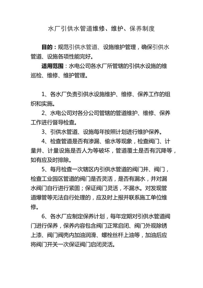 水廠引供水管道維修、維護、保養(yǎng)制度docx